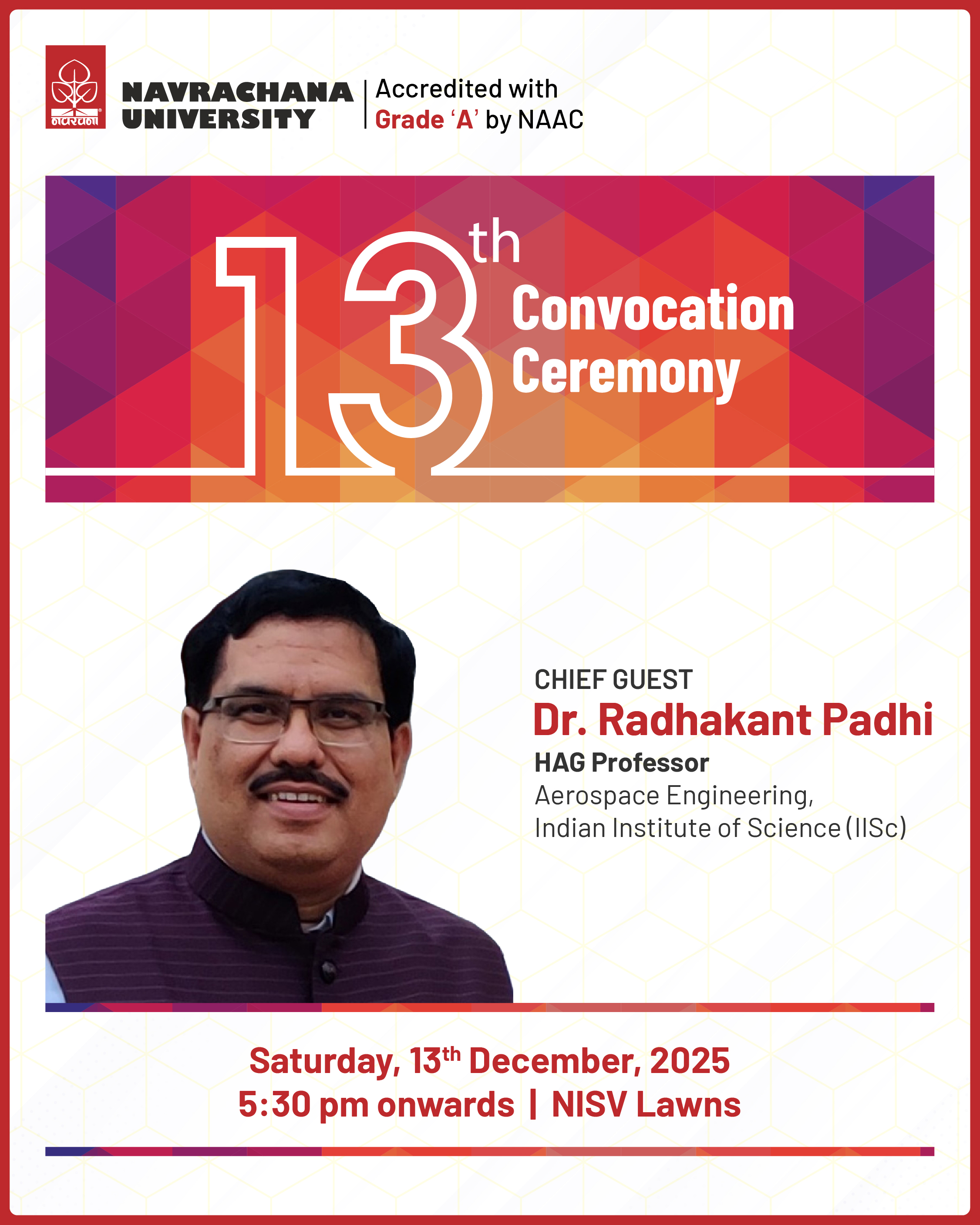 Welcome to Navrachana University, Vadodara(NUV), where education unlocks potential, sparks change, and shapes a brighter future. Our mission transcends traditional learning; we empower students to become transformative leaders, ready to thrive in an ever-evolving world. Central to our philosophy is the belief: